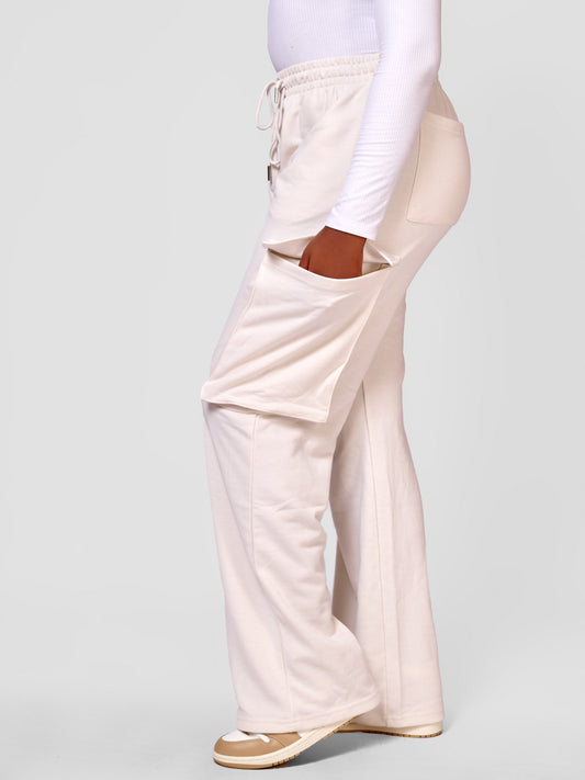 City Chic Wide Leg Cargo Sweatpants - Ivory